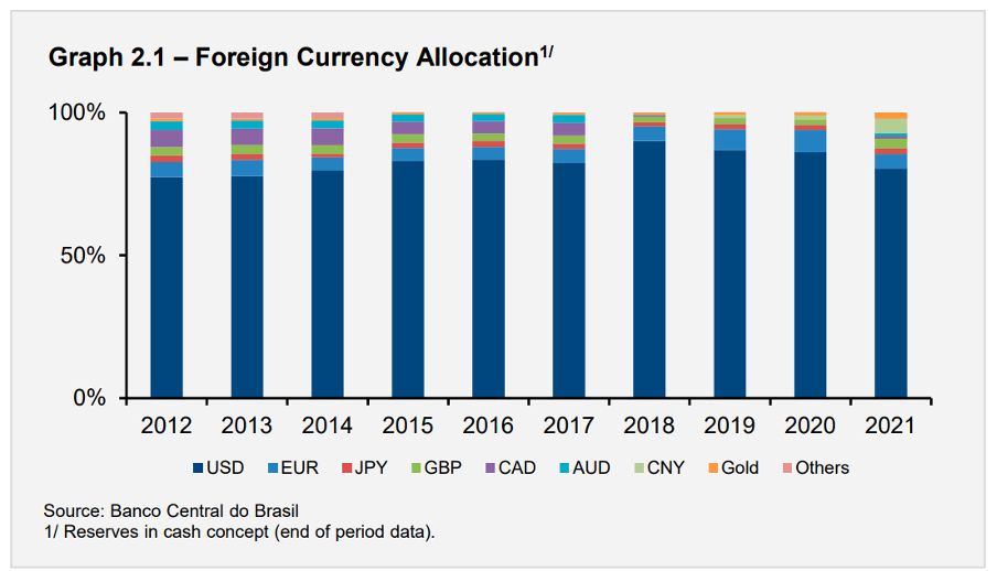 For example, Japan sold dollar-denominated assets in the fall of 2022 in order to prop up the value of the Yen. Similarly, Brazil engaged in similar transactions throughout 2021 and 2022 as their commodity-focused economy struggled with inflation. Selling some of their USD holdings allowed them to prop up the real ever so slightly: