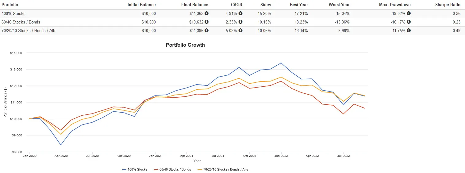 Traditionally, portfolio management consisted of allocating three types of assets: stocks, bonds, and cash. For example, the popular 60/40 portfolio, long considered a "balanced" blend of risk and return is comprised of just stocks and bonds. For many decades, a 60/40 portfolio provided great returns while mitigating volatility and drawdowns.
