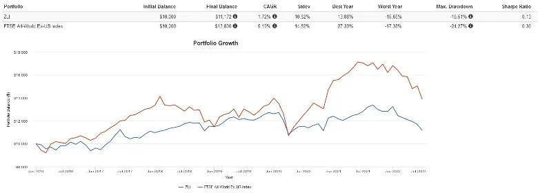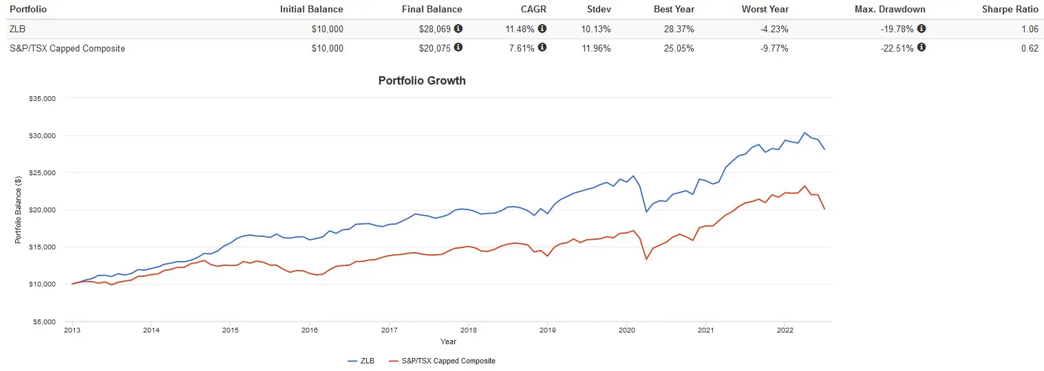 In terms of historical performance since inception, ZLB has beaten the S&P/TSX Capped Composite Index, while ZLU has beaten the S&P 500, but ZLI has failed to beat the FTSE All-World Ex-US Index.