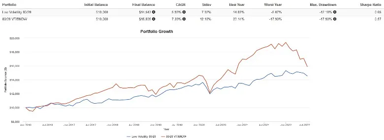Low volatility investments are, therefore, stocks or ETFs with a lower-than-average standard deviation and beta compared to a benchmark, such as sector peers for the former and a broad market index for the latter. While past performance can't predict future returns, it turns out that past volatility is a fairly good predictor of future volatility.