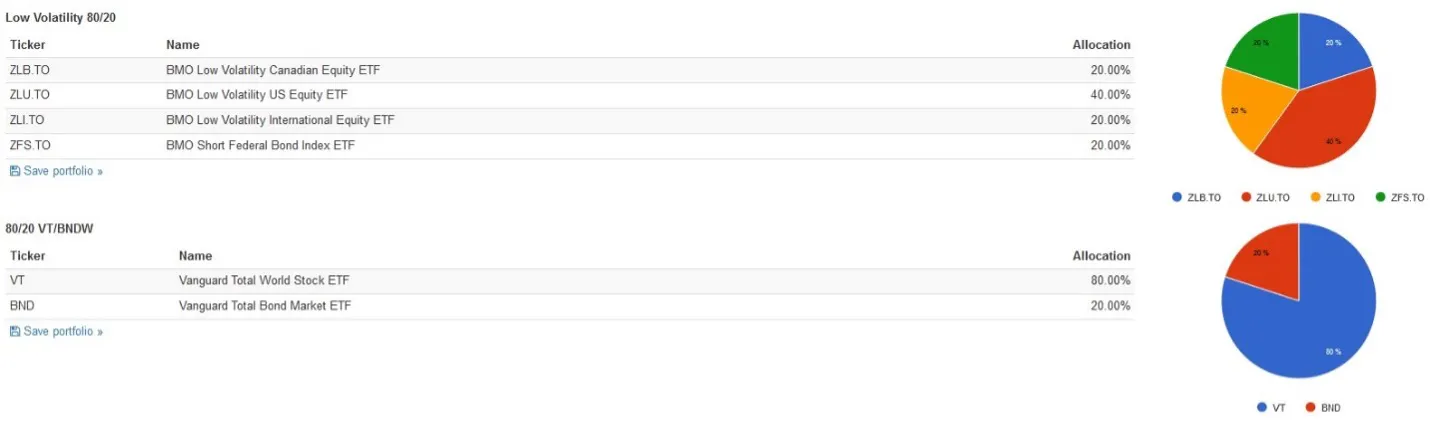 Throw a short-term Canadian government bond index ETF like the BMO Short Federal Bond Index ETF (ZFS) in there at a 20% allocation, and you get a very low-volatility, globally diversified portfolio with much lower standard deviation (worst year and max drawdowns) and a better overall risk-adjusted return (Sharpe ratio) compared to an 80/20 stocks / bonds portfolio: