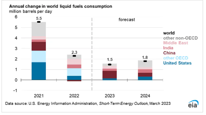 - 7 mars - L'Administration américaine d'information sur l'énergie prévoit une croissance de la demande de 1,5 et 1,8 million de b/j en 2023 et 2024.