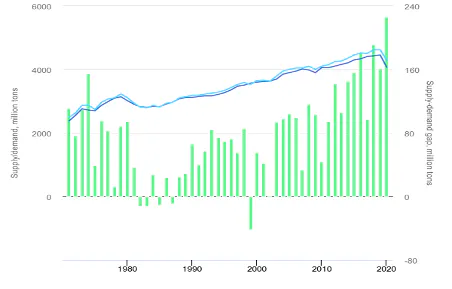 Si l'on supprime les deux valeurs aberrantes de ce graphique (2008 et 2020), on constate que les baisses de prix ont été modérées tout au long des années 80 et 90 et qu'il s'agissait principalement d'un retour à la moyenne, plutôt que d'un véritable effondrement des prix. Dans le même temps, la demande de pétrole n'a cessé de croître depuis 1975 et devrait continuer à augmenter - malgré la récession annoncée pour les deux prochaines années - sous l'impulsion de la Chine, de l'Inde et d'autres pays non membres de l'OCDE.