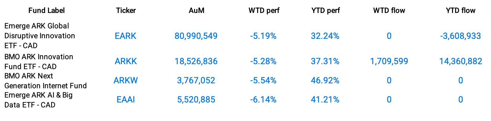 Données sur les ETF pour la semaine du 7 au 11 août 2023.